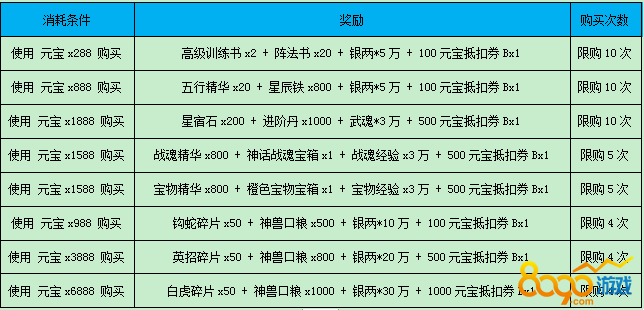 【活动内容】活动期间,可花费元宝购买超值折扣道具。