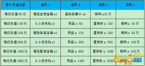 活动期间,每日累计充值满500元,免费领取 元宝x8000 (每日限领一次)