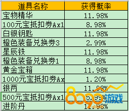 元宝消费转盘概率公示: