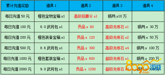 【活动内容】活动期间,每日累计充值达到对应额度即可领取充值奖励!