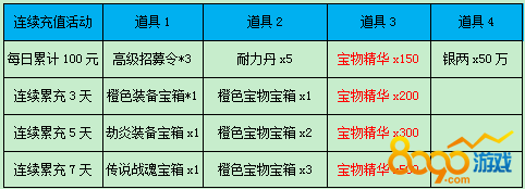 【活动内容】每日充值达到指定金额可获得奖励,累计满3、5、7天,还有额外奖励!