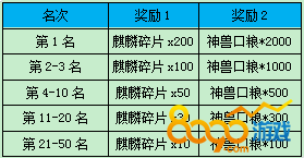 积分排行榜奖励参考表:
