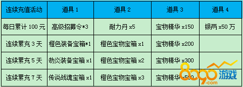 【活动内容】每日充值达到指定金额可获得奖励,累计满3、5、7天,还有额外奖励!