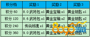 1) 9.0武将碎片包1:关羽碎片x10、周瑜碎片x10、司马懿碎片x10、吕布碎片x10四选一