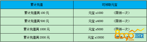 【活动内容】活动期间,累计充值达到对应条件,即可获得大量元宝返还!