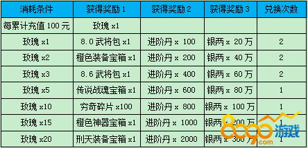 【活动内容】活动期间,每累计充值满1000元宝可获得一朵玫瑰,玫瑰可在兑换界面兑换精品奖励!