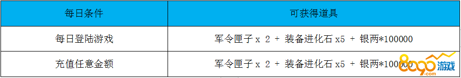【活动内容】感恩回馈,玩家每日登陆即可免费领一份福利礼包,同时每日充值任意金额,可再领一份福利礼包!