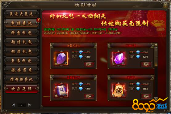 活动内容:活动期间,每消费1000钻石即可获得1把宝塔密匙可在玲珑宝塔内探索获得极品奖励!