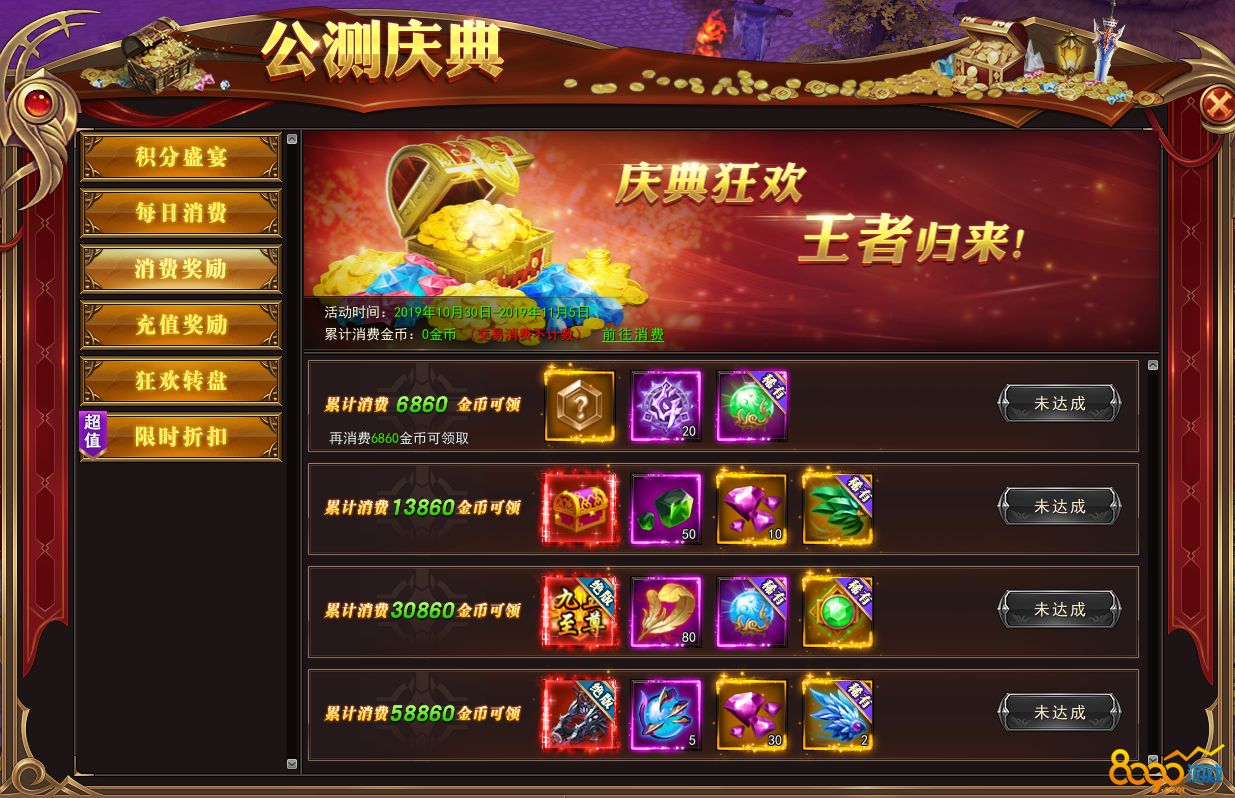 【活动内容】活动期间,每日消费金币达到指定数额,即可领取对应档次奖励;档次越高奖励越丰富。每日消费每日重置。