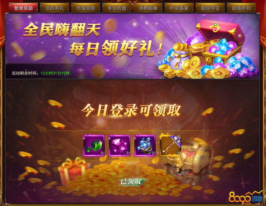 登录游戏即可领取超值奖励,全民嗨翻天!