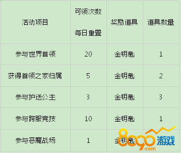 1. 完成“登录奖励”和“活跃有礼”活动可获得道具“金钥匙”