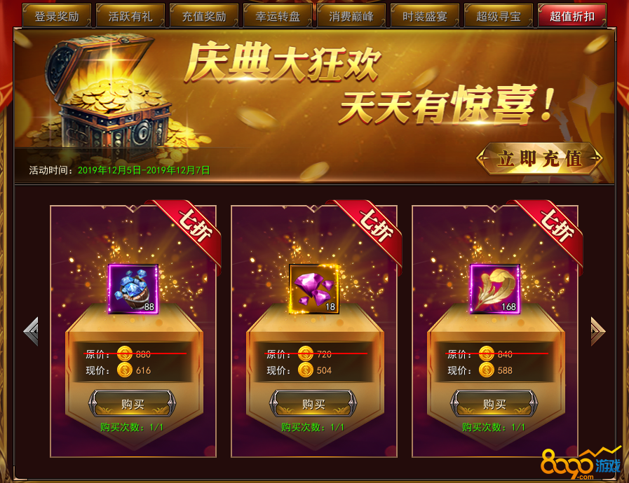 1. 指定道具以7折出售,活动期间售完即止,不进行每日重置