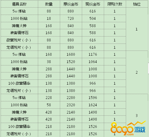 2. 道具按数量分为3档,购买当前档位后才可见到下一档