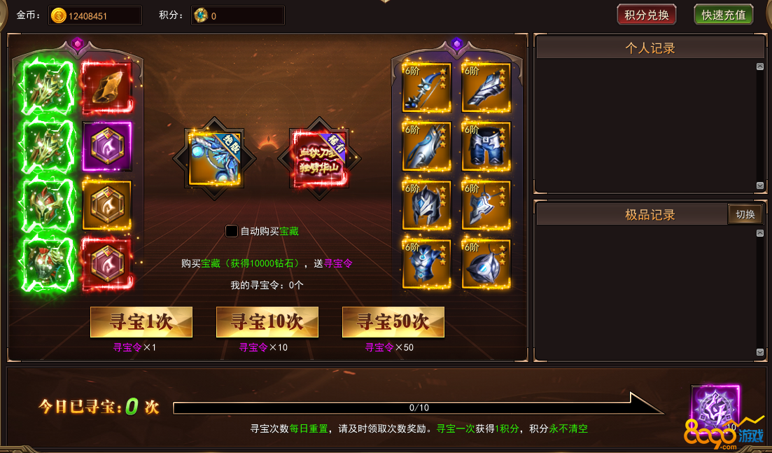 4. 寻宝一次获得1积分,积分永不清空,可在界面右上角的积分兑换里兑换道具