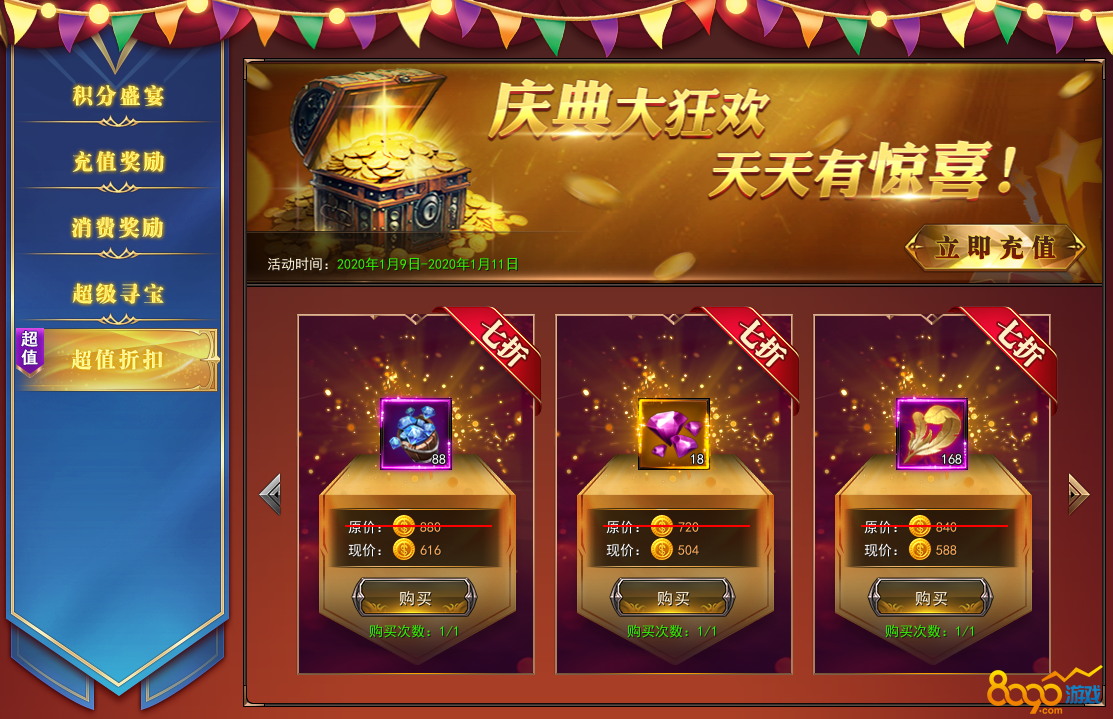 1. 指定道具以7折出售,活动期间售完即止,不进行每日重置