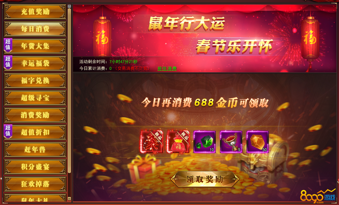 活动期间,每天15:00、20:00在圣光城参与年兽击杀可掉落奖励