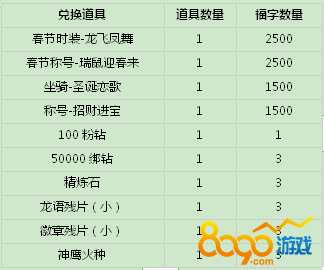 1. 收集对应数量的“福”字可兑换珍稀道具