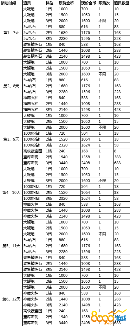 3-5折出售部分道具,活动期间售完即止,不进行每日重置