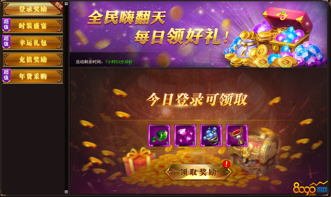 登录游戏即可领取超值奖励,全民嗨翻天!