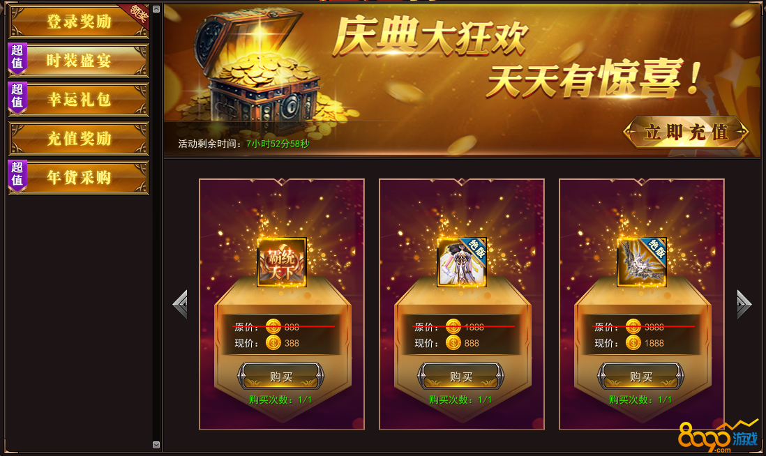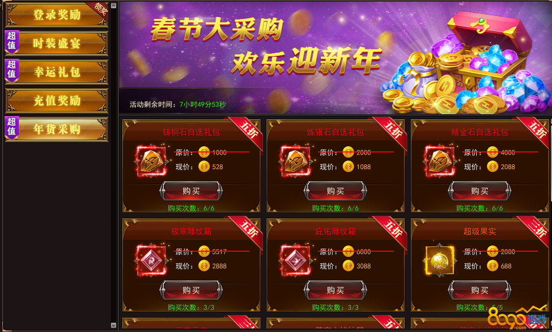 1. 折扣出售部分道具,活动期间售完即止,不进行每日重置