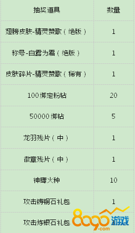精炼石*5、100粉钻*3、5w绑钻*2、圣杯残片(大)*2