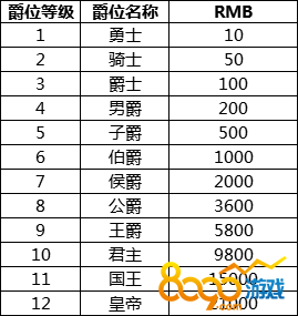 说明:游戏内的VIP(皇族)系统,通过登录领奖、完成目标等途径升级。通过充值升级的系统是爵位系统