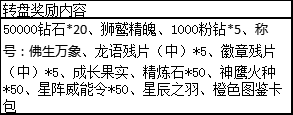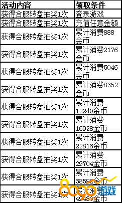 【活动内容】:活动期间,玩家可进行抽奖,登录游戏即可获得1次抽奖次数,充值任意金额即可获得1次抽奖次数,之后每次消费一定数量金币均可获得1次抽奖次数,12次抽奖后可领走全部奖励。