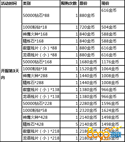 【活动内容】合服开服后3天内,开放超值折扣,在3天内物品达到购买次数上限后即不可再次购买。