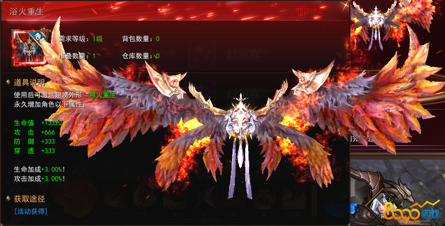 一共70个任务,完成初入游戏的35个任务,可以获得玩转神座称号奖励,完成玩转游戏的35个任务,可以获得翅膀浴火重生,生命与攻击加成各增加3%!