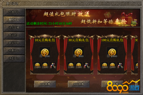 活动说明 : 特惠好礼,极品道具,限量发售,先到先得!