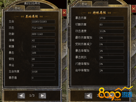 善恶值:杀人数量越多,善恶值越高,被击败掉落装备概率增大