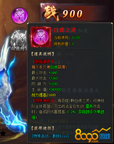 吞噬灵兽之灵可额外增加属性,并附带特殊神技。