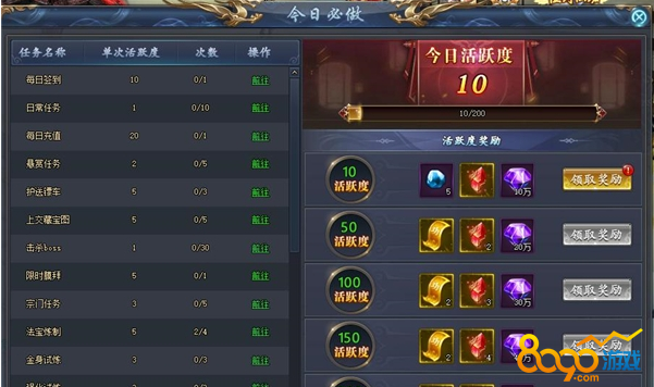 其次每日完成任务即可获得活跃度的奖励哦。