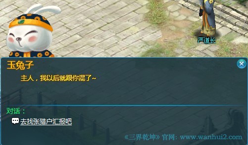 漫漫修真路上怎么能孤身一人?接下来的任务会在给你介绍如何捕捉的同时送给你一只兔宝宝作为您的宠物,在今后的路上陪伴你,为你保教护航。
