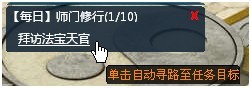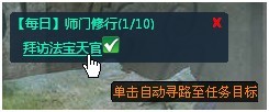 玩家达成任务要求后,点击界面右侧的跑环任务跟踪链接,玩家就自动寻路回到本派掌门处,提交任务并领取奖励。