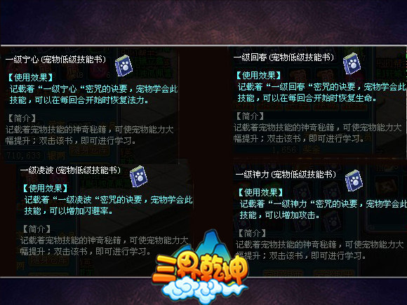 宁心:宠物学会此技能,可使宠物在每回合开始时恢复一定的法力值。