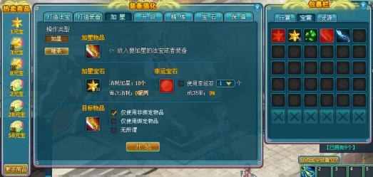 加星的法宝需要从装备栏卸下,放在宝囊中。再由宝囊移动到加星界面。