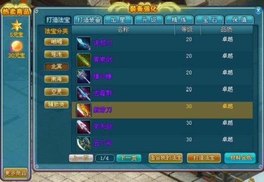 选中您所需要打造的法宝“双击”或者选中后点击“打造法宝”。