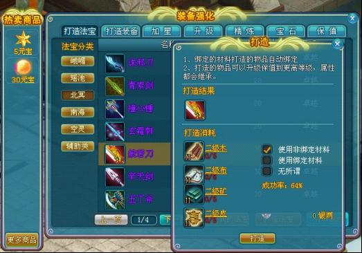 选中后会出现打造界面,会出现打造法宝需要消耗的材料。