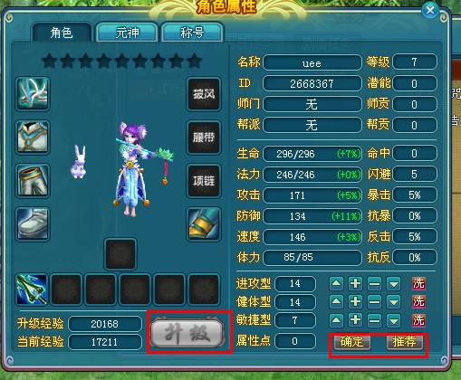 玩家如果拿不准自己到底要向哪方面发展,或者不想费事点来点去,那么《西游三界乾坤》也会为您解决这个烦恼。每次升级之后,玩家就可以点击右下方的“推荐”按钮,《西游三界乾坤》就会自动为玩家系统的分配好属性点,最后点击“确定”就完成属性点的分配。