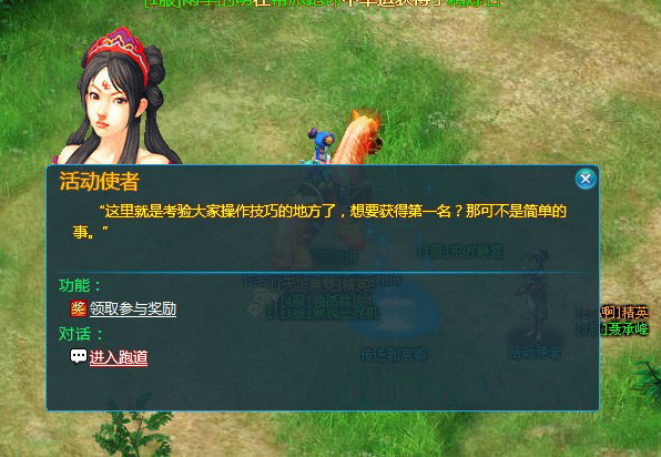 点击活动使者,与其对话,就可以进入到“争分夺秒”的比赛中,点击“进入跑道”。