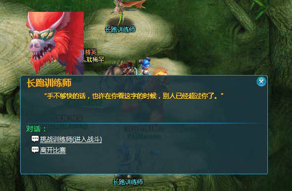 随意点击其中的一个长跑训练师,点击“挑战训练师”,就可以进入战斗中。