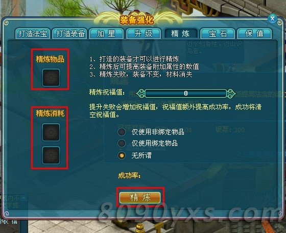 搜索"8090网页游戏"三界乾坤精炼保值功能解析