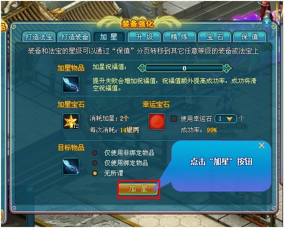 ½øÈëµ½·¨±¦¼ÓÐǵĽçÃæ£¬µã»÷“¼ÓÐÇ”°´Å¥£¬¾Í¿ÉÒÔ½øÐиø·¨±¦¼ÓÐÇÁË¡£