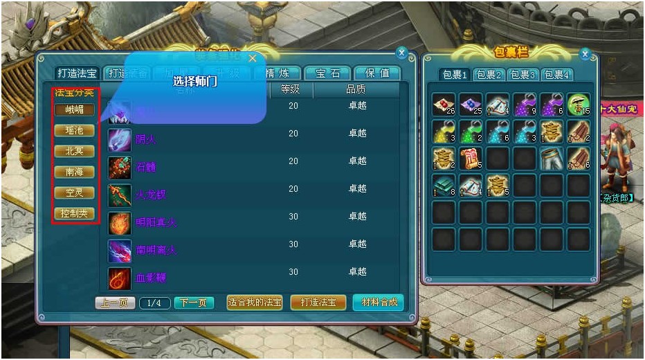 µ¯³ö´òÔì·¨±¦µÄ½çÃæ£¬ÔÙµã»÷×óÃæµÄ“·¨±¦·ÖÀà”£¬Ñ¡Ôñ×Ô¼ºµÄÃÅÅÉ¡£