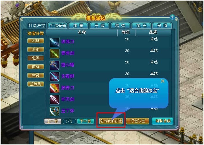 Ñ¡ÔñºÃ×Ô¼ºµÄÃÅÅÉÖ®ºó£¬¾Í¿ÉÒÔÑ¡ÔñÒª´òÔìµÄ·¨±¦ÁË¡£Äò»×¼Ö÷Ò⣬ÄǾ͵ã»÷“ÊʺÏÎҵ퍱¦”£¬ÏµÍ³»á×Ô¶¯ÎªÍæ¼ÒɸѡºÏÊʵ퍱¦¡£