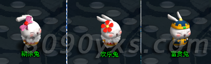 获得的第一只宠物是小兔子,有3种类型:糊涂兔、欢乐兔、富贵兔。