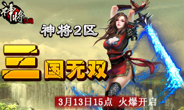 8090神将三国二服-三国无双将于2013年3月13日15:00震撼开启。精彩即将上演,超乎想象的游戏体验正期待您的加入! 喜迎新服开启,8090《神将三国》已为您准备了丰富的开服活动助你在三国乱世中驰骋沙场、建功立业!