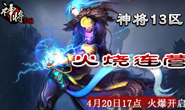 8090神将三国十三服-火烧连营将于2013年4月20日17:00震撼开启。精彩即将上演,超乎想象的游戏体验正期待您的加入! 喜迎新服开启,8090《神将三国》已为您准备了丰富的开服活动助你在三国乱世中驰骋沙场、建功立业!