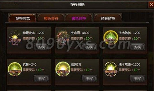 首先,小编要和《神将三国》的玩家们讲的是命符种类,《神将三国》的命符种类有生命、物攻、法攻三种大众型,另外还有免伤、速度等等各种乱七八糟型,而且只会在紫色品质以上才会有;它的等级依次为绿色、蓝色、紫色、橙色。